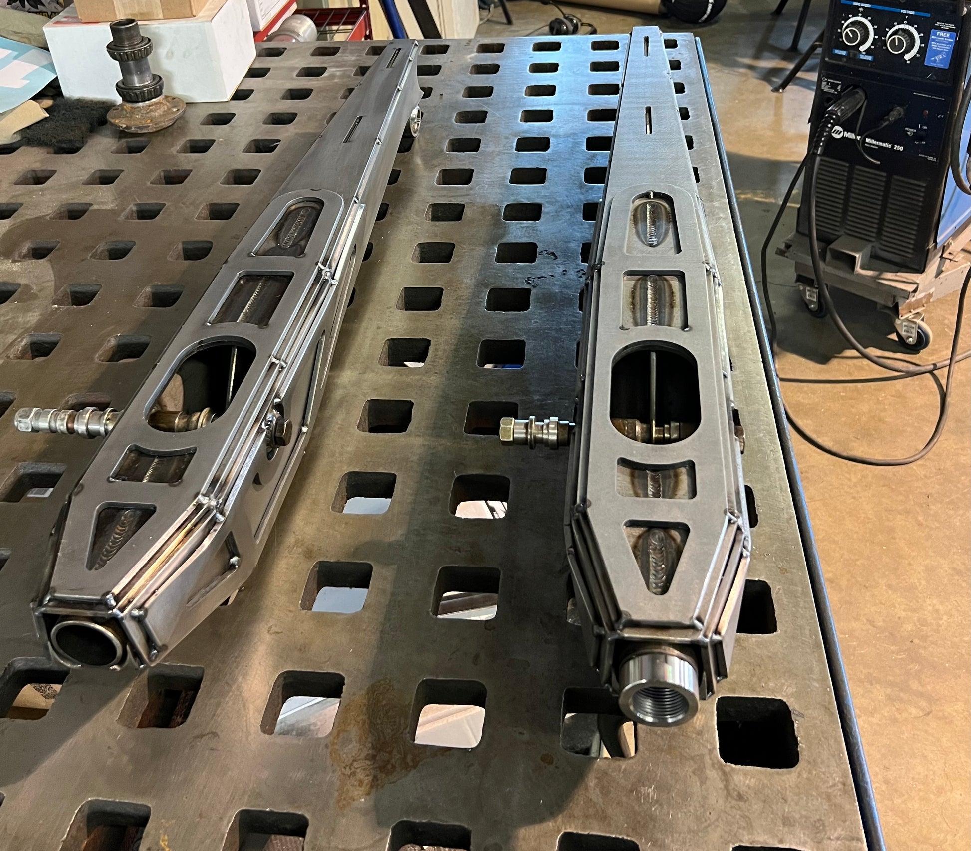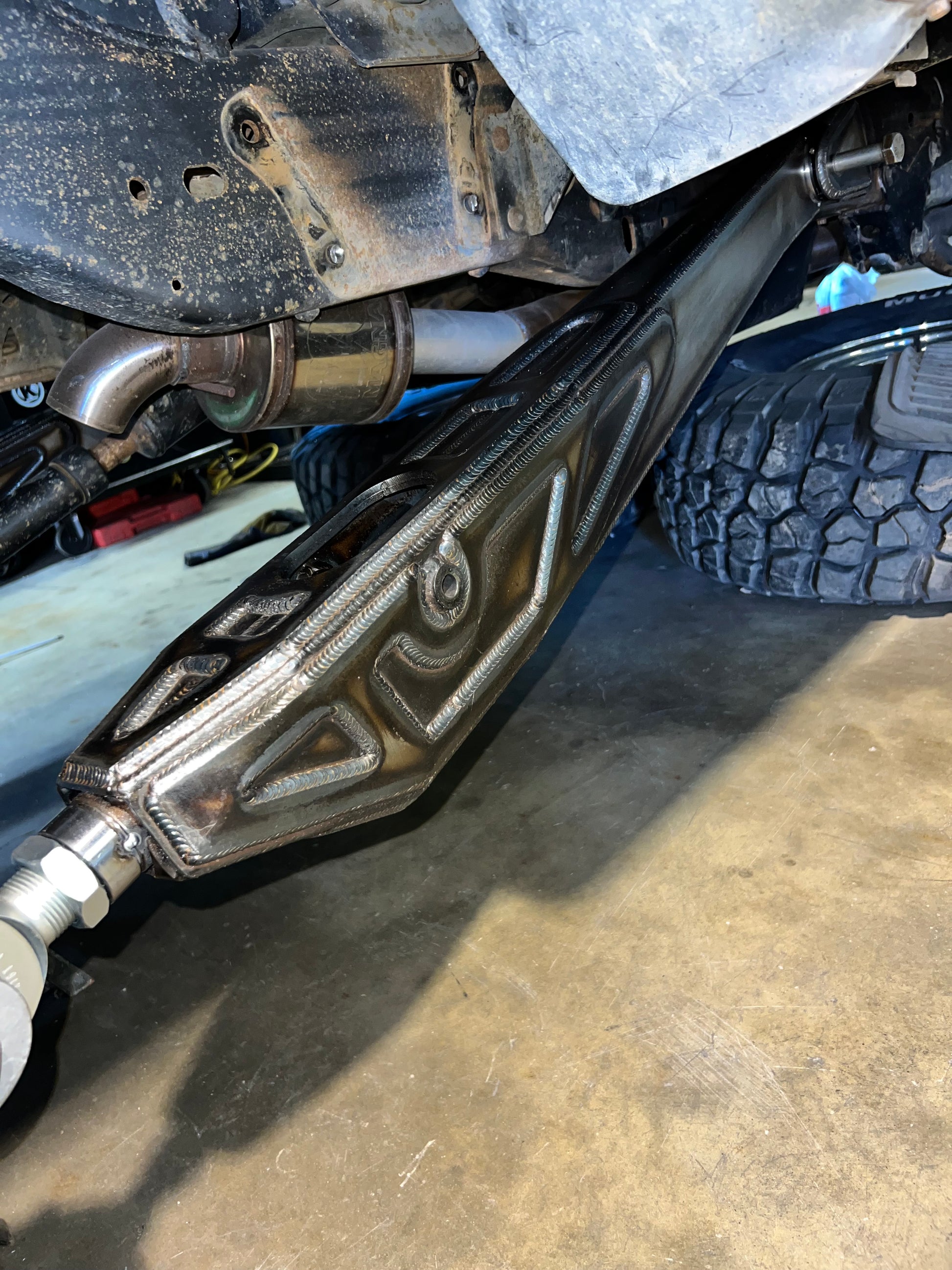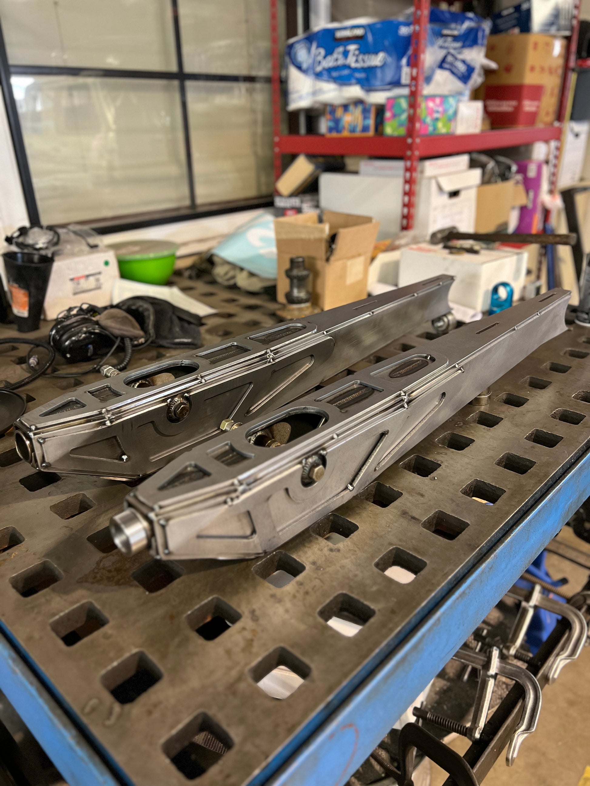 48" single shock trailing arms designed around the bronco platform. Utilizes Kartek wobble stopper uniball kit. Heims and uniballs not included. Please call to order. 2-3 week lead time.
